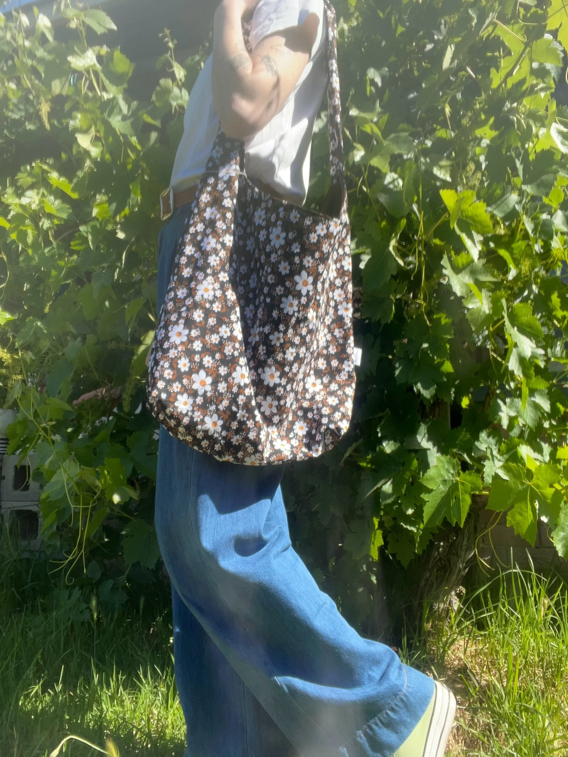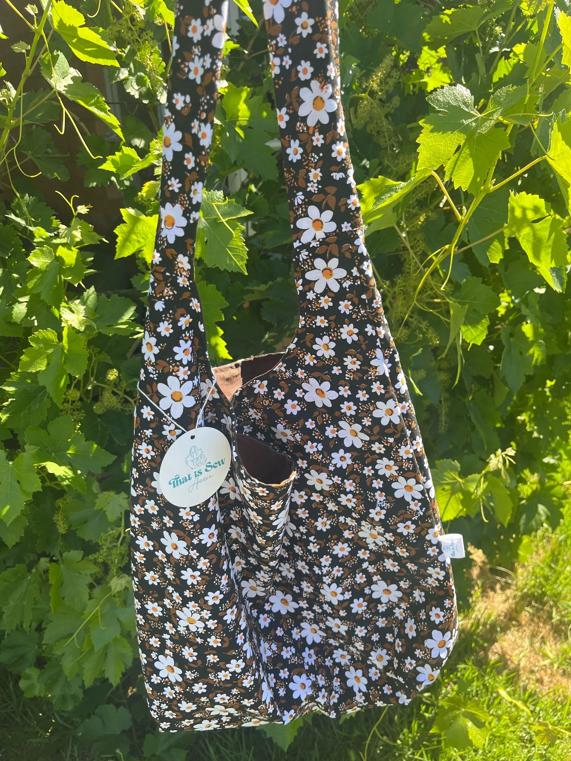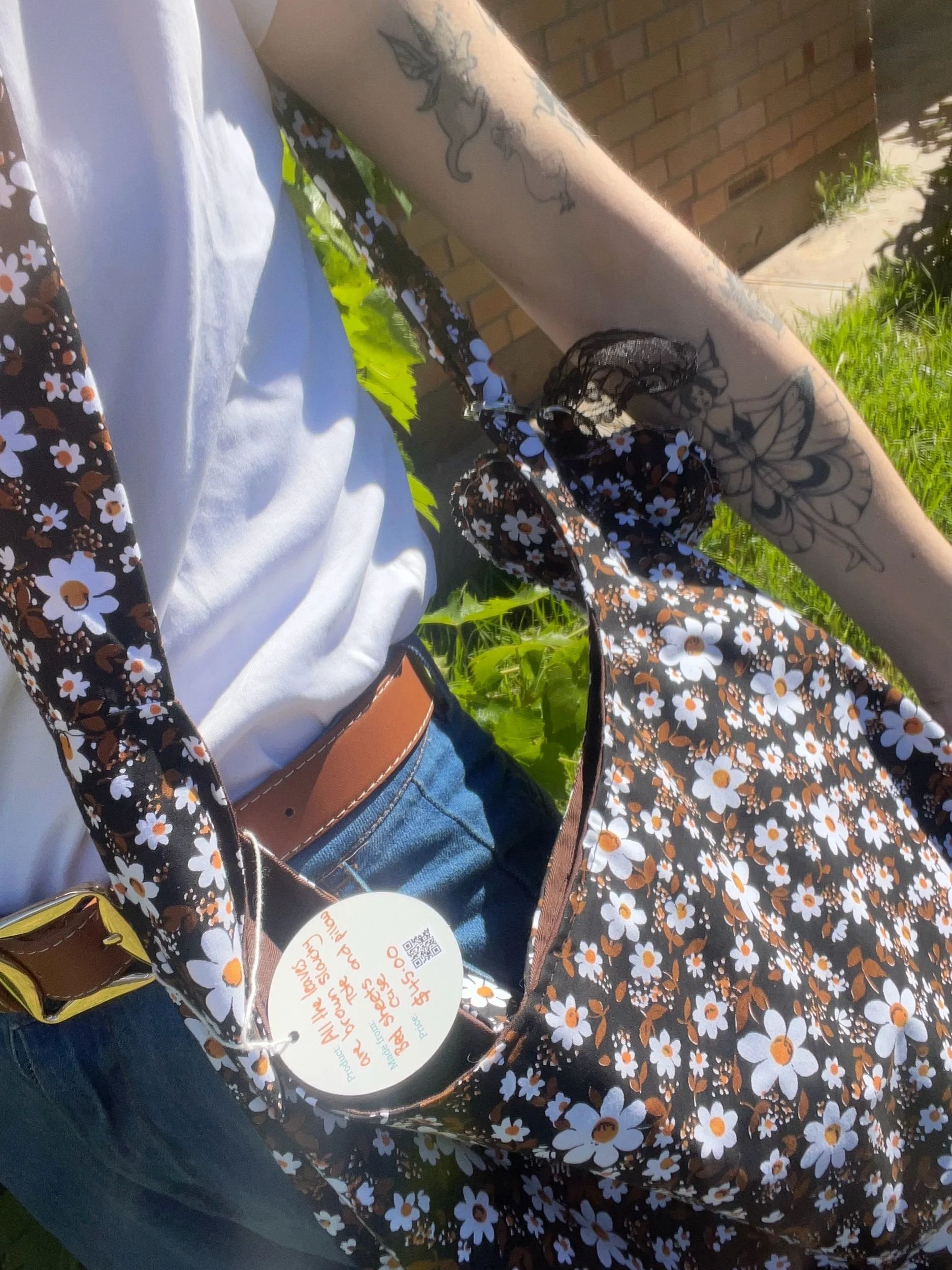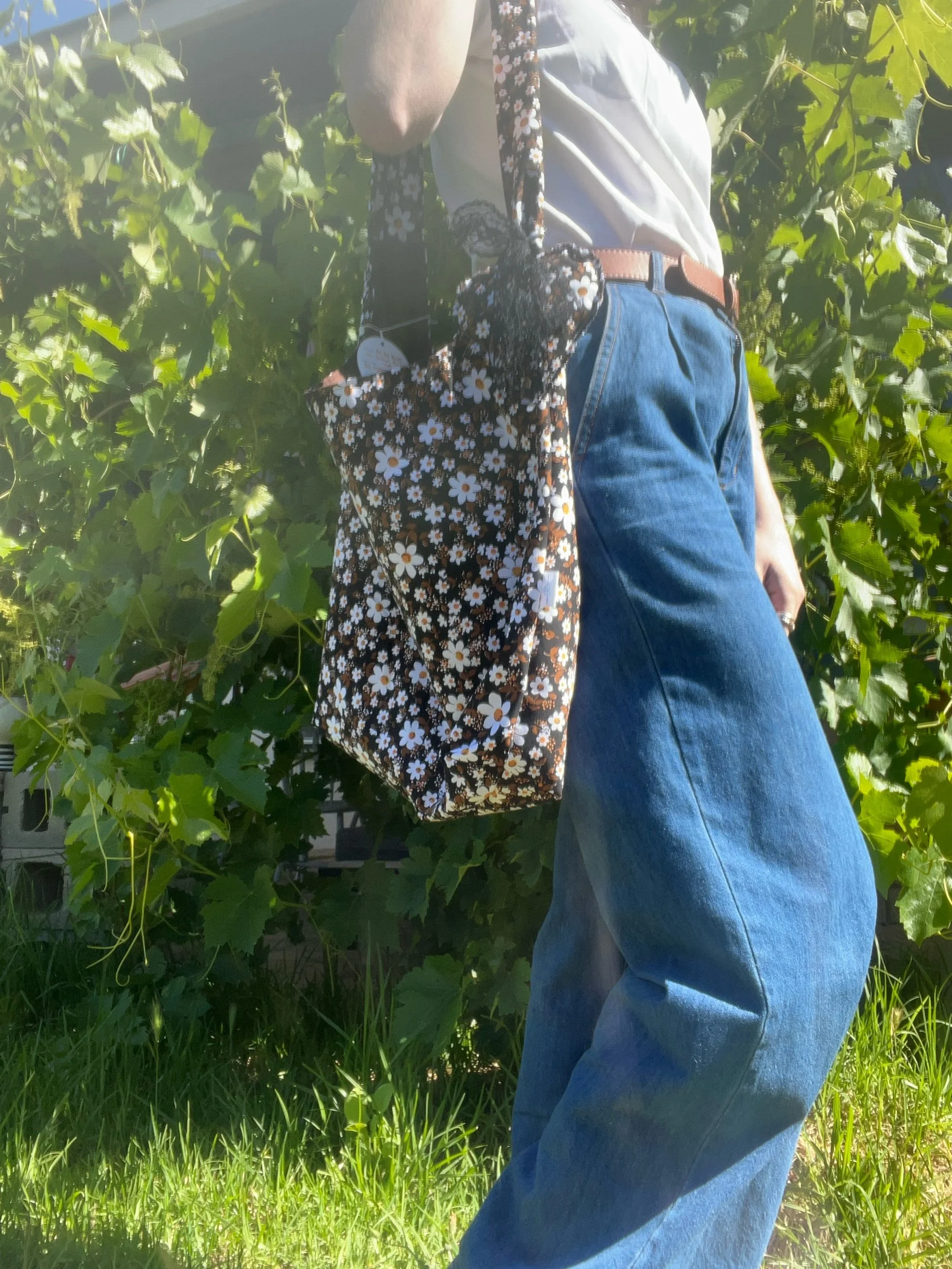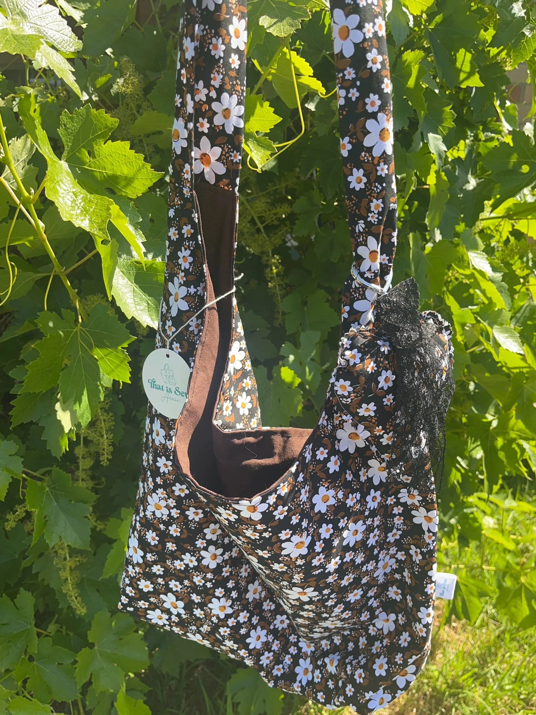 Carry vintage style with this slouchy tote, sewn from vintage Sheridan brown and white floral sheets. It’s fully lined with rich brown thrifted fabric off-cuts for a soft, sturdy finish, and includes a matching floral interior pocket to keep smaller essentials neatly separated from the rest of the bag. Unique, roomy, and sustainable!